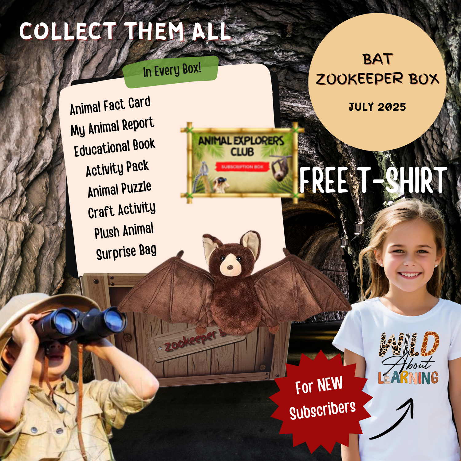 Step into the wild with our Zookeeper Subscription Box – where learning meets adventure and every month brings a new animal to your doorstep! From Alligators to Zebras, there's always a new creature waiting to be explored!